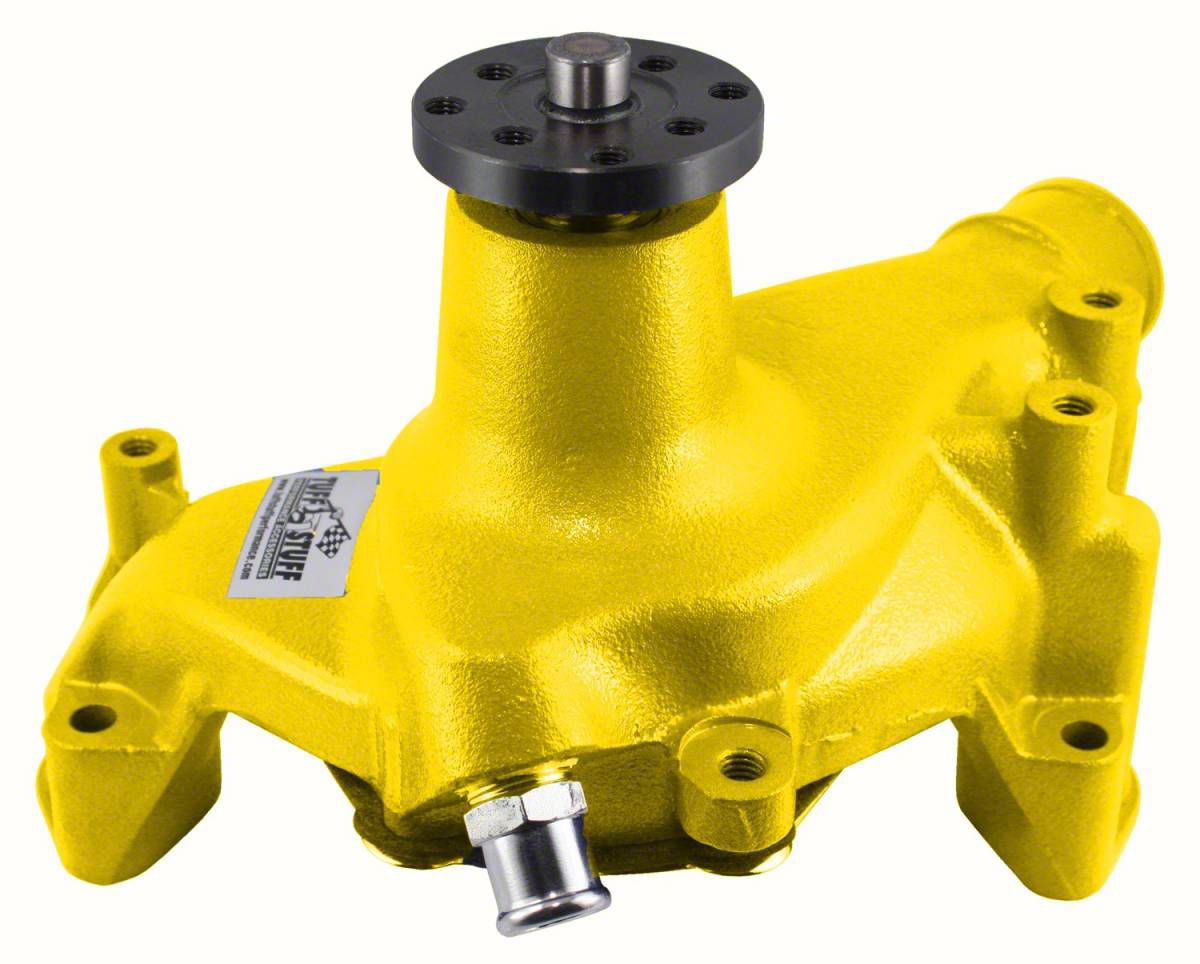 SuperCool Water Pump; 6.937 in. Hub Height; 5/8 in. Pilot; Long; Threaded Water Port; Yellow Powdercoat w/Chrome Accents; 1449NCYELLOW (69-92 Camaro)Find parts that fit my vehicle