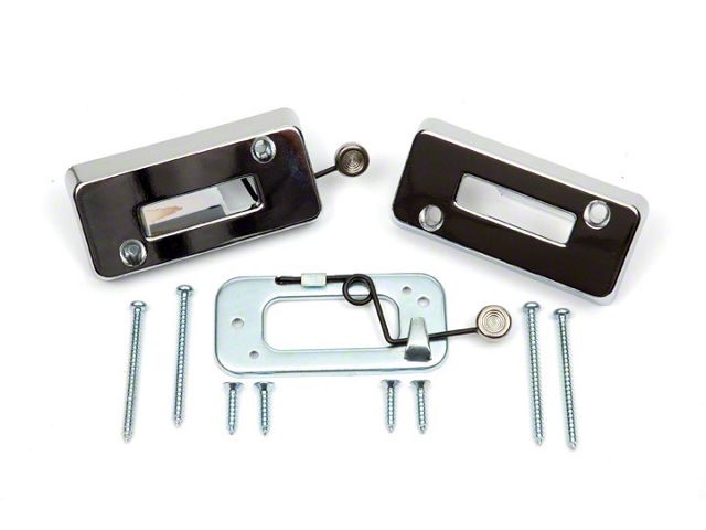 Mounting brackets with correct chrome lock knob also include chrome escutcheon plates. For both front seats. Pair.
