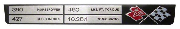 1969 Corvette Console Specifications Plate 427ci/390hp