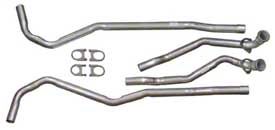 Premium Exhaust Upgrade. The 1969 Corvette Exhaust Pipe Set for Big Block engines with manual transmissions features aluminized steel construction and a stepped design from 2.5 inch to 2 inch pipe diameter. This set improves exhaust flow to optimize engine performance while maintaining authentic sound and appearance. It replaces the original pipes to provide enhanced gas evacuation and reliability for high-performance applications.