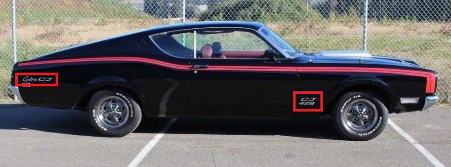 These new Mercury Cyclone body side decals are made to match the original exactly. They are precision cut and designed in the factory style.