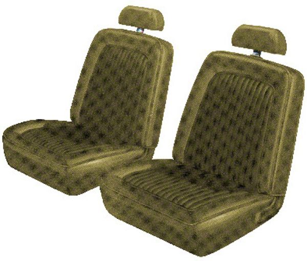 Distinctive Industries 69 Mustang Standard Interior Seat Upholstery features the original Corinthian grain skirts and Kiwi grain inserts in 32 oz. vinyl. The welting is solid for black and vinyl wrapped for all other colors to ensure an exact color match. The vertical pleats are sewn, just like the originals, with the correct spacing. Matching headrest upholstery is included.