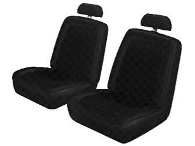 Distinctive Industries 69 Mustang Standard Interior Front Bucket Seat Upholstery features the original Corinthian grain skirts and Kiwi grain inserts in 32 oz. vinyl. The welting is solid for black and vinyl wrapped for all other colors to ensure an exact color match. The vertical pleats are sewn, just like the originals, with the correct spacing. Matching headrests are included.