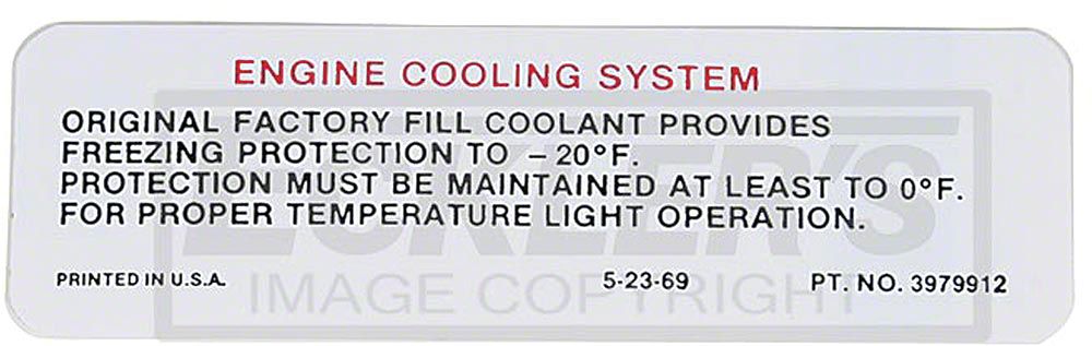 This El Camino reproduction caution cooling decal has been manufactured to original factory specifications using today's modern manufacturing techniques. You will find the fit and finish will work superbly for your restoration. In addition, using a reproduction caution cooling decal from the El Camino Store will add authenticity and value to your vehicle.