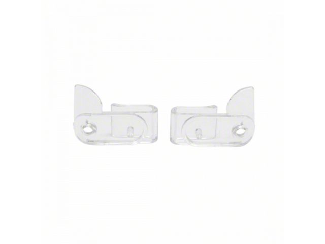 This is a pair of 1970-1971 Firebird shoulder belt retainers, an often broken or missing little item. Before F-Bodies got integrated shoulder belts with retractors in 1974 the shoulder belts were stored above the side window openings. In 1970-1971 these clips held the shoulder belt buckle up against the headliner. At the other end was an elastic strap which hooked over a standard coat hook, which we also offer. Without these items in place your shoulder belts are annoying and messy. With them it's easy to use your shoulder belts when you drive, and get them out of the way when parked.