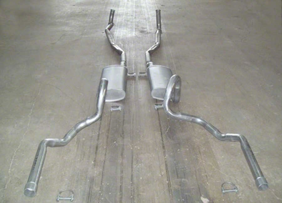 Restore your Chevy exhaust to the original showroom look with this 14 gauge aluminized steel system from Eckler’s Chevelle. Starting at the exhaust manifolds, these new pipes extend all the way back to the over-axle pipes, efficiently routing exhaust gasses into the correct muffler before they exit through properly bent tailpipes that are cut to the precise angle GM used when these cars rolled off the assembly line. Recreate the sound of the past with this original style dual exhaust system for your Chevelle. Trust Eckler’s Chevelle for all your restoration and performance parts needs. Fits: 1970, 1971, 1972