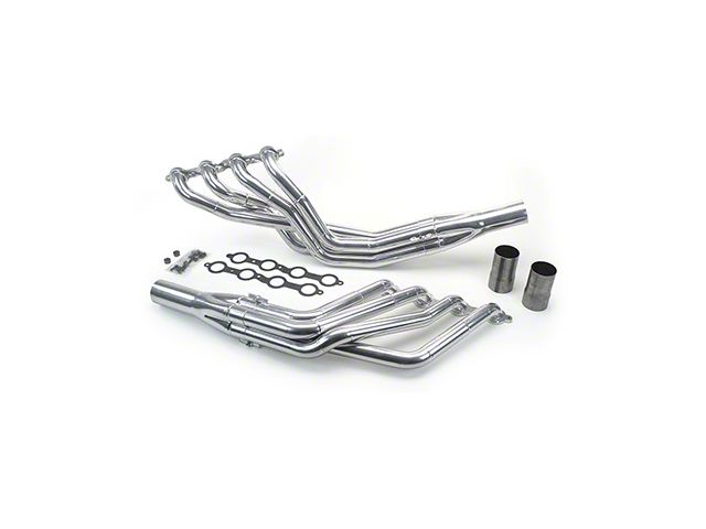 Our ceramic-coated headers offer many features that are normally only found on custom race headers. We start with 3/8" laser cut flanges with the tubes welded inside and out and then machined. The mid-length headers use a gasket-less ball and socket type collector for a leak free install. The long tubes feature a slip-fit collector that when used in conjunction with band clamps offer great ground clearance .We offer several sizes so you can match them to your horsepower level. Our stepped headers offer great high rpm performance while retaining good low and mid-range power. They all include gaskets, bolts, reducers, and O2 sensor bungs.