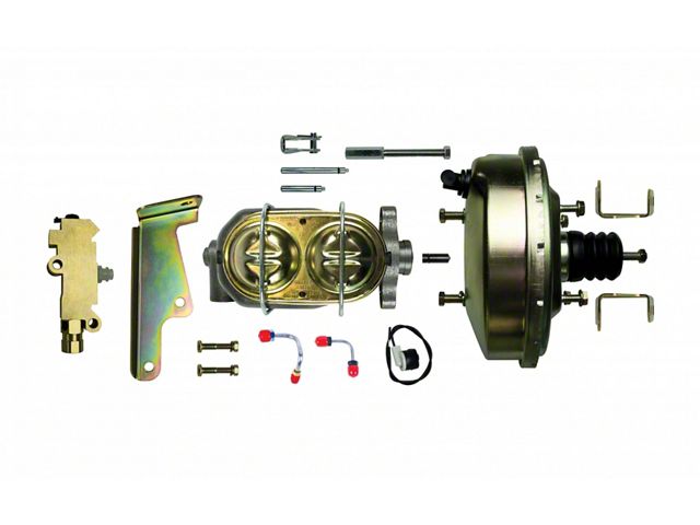 Eckler's is proud to offer these show quality Slimline Series Booster and master cylinder combo kits. These combo kits are just what you need to make your engine compartment looks it's best. What makes these kits so great is the Slimline Booster pack a lot of punch in a small, sleek package. This 9" dual & single diaphragm booster provides 25%-35% more assists than the single diaphragm booster. They come in original gold cad color. Eckler's offers many different choices in these kits whether you have disc brakes on the front and drums on the rear or disc all the way around we have the right package for you. One reason these kits are so awesome is they are perfect for big block applications where clearance room maybe an issue. These kits come with a Slimline booster (brackets include