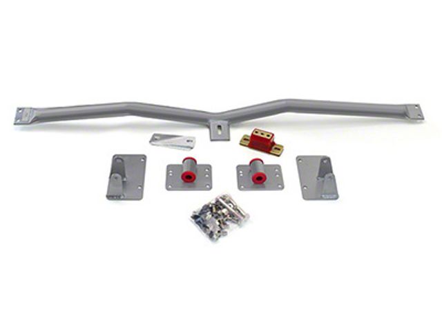 Frame mounts and transmission crossmember bolt-in to factory mounting holes, requiring no drilling or modifications