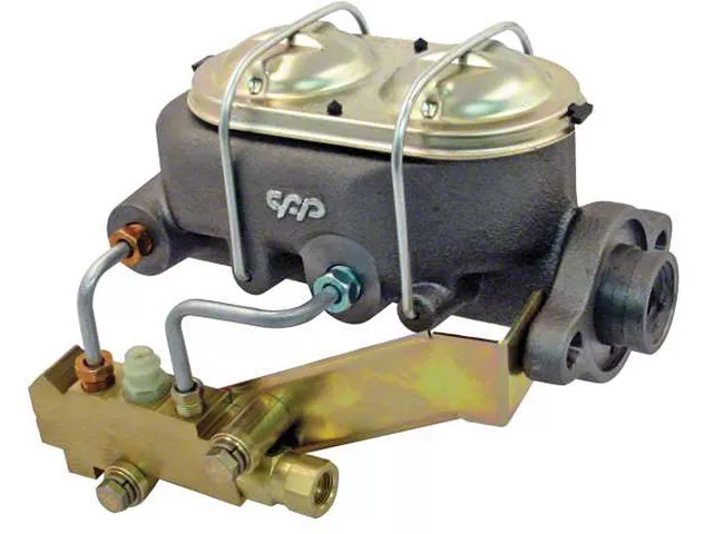 This disc master cylinder with AC Delco type proportioning valve is just what you need to finish the disc brakes on your Chevelle. Our unique setup includes a master cylinder bore adapter to allow you to use it for manual or power disc applications. Our master cylinder has a 1.00" bore diameter which creates more line pressure for manual brake applications and makes your power brake application feel much better than larger bore setups. Proportioning valve utilizes a lower pressure shut off valve for safety, should line pressure ever become compromised. Kit includes low pressure warning light wire and plug.