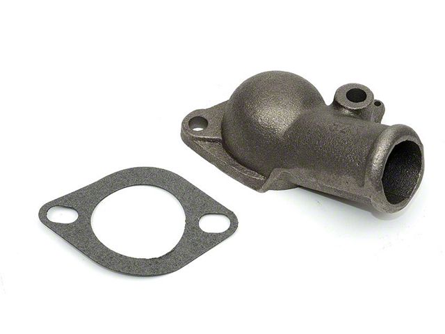 This housing is is a great replacement for the original. It is the style that uses two different length bolts, and has a spring loop for those who need it. The loop can easily be trimmed off if you don't. It works with standard thermostats. We have several available in our other listings. A gasket is included, but it uses a standard one, so if you ever have to remove this housing it's easy to find a replacement. It can be left bare, or can be painted with a minumum of preparation.