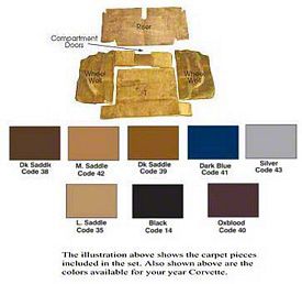 Carpet and jute padding are press molded at the same time, providing accurate contours for a perfect fit. All sets are made with the correct molded heel, pad, dimmer switch and vinyl edge bindings. 1970-77 with leather interiors were equipped with cut-pile carpet.