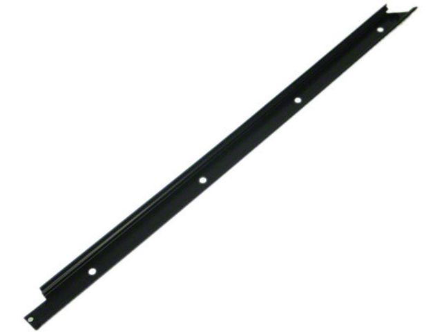 Durable T-Top Weatherstrip Retainer. The T-Top Weatherstrip Retainer is designed for 1970-Early 1977 Corvette C3 models with painted roofs, providing a high-quality replacement for your vehicle's weatherstrip system. Featuring a matte black finish, this left side model is crafted from stainless steel and equipped with 19 pins for secure attachment. As a reproduction part, it ensures a precise fit and reliable performance.