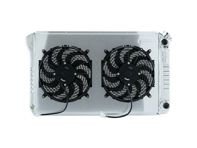 Eckler's is proud to offer this quality all aluminum radiator with dual electric fan kit by COLD-CASE at an affordable price compared to other high price aluminum radiator/fan kits on the market. This radiator is an exact fit (not a universal replacement), replaces your original copper/brass radiator, and will cool like a modern car! COLD-CASE radiators are TIG welded 100% aluminum and absolutely beautiful! You don't need to buy a 3 or 4 row aluminum radiator! They doesn't cool as well as this oversize 2 row model. COLD-CASE aluminum radiators are 50-75% lighter than factory copper and brass radiator units and cool up to 40% better. Plus, the incredible price makes this radiator/fan kit an exceptional value