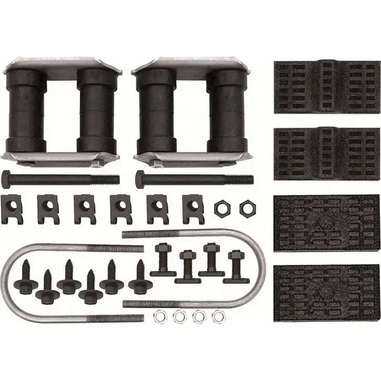 .Ecklers offers this complete rear leaf spring installation kit designed for use on 1970-81 various GM vehicles equipped with multi-leaf rear springs including 1970-81 Camaro and Firebird models. Each leaf spring installation set comes complete with rear shackles, U-bolts, T-bolts, upper and lower spring pads, spring eye bolts, and clips and screws for mounting. The shackle sets include the correct plates, bushings, bolts and nuts for authenticity. Replace your leaf spring components and improve the ride!