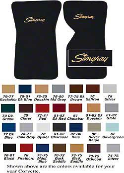 Application. These Corvette Cut-Pile Floor Mats With Embroidery 13 Stingray Logo fit all 1970-1982 Chevrolet Corvette models.