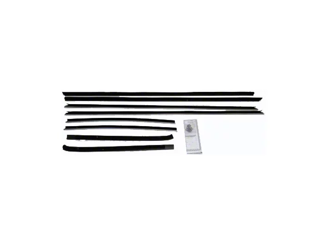 This is the belt line weatherstripping that fits in the top edge of your door. All window felt kits include outer door pieces as well as the inner pieces that attach to the top of your door panel ("fuzzies"). All kits include correct extruded design, original mounting clips and hardware as required. Made in the USA! Count on MAC's for all of your classic Ford restoration needs.