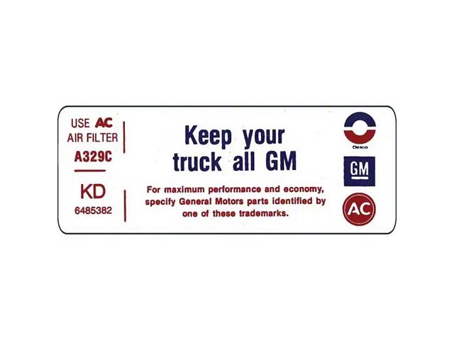 1970 Chevelle Air Cleaner Decal, "Keep Your GM All GM"