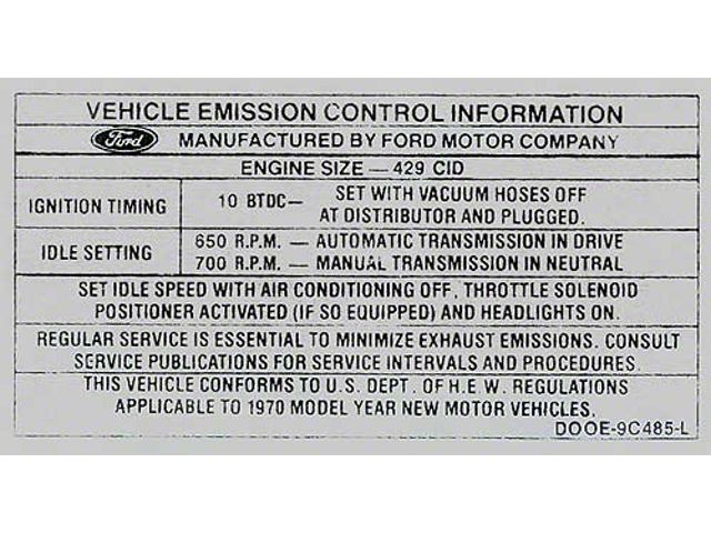 Emission Decal - Automatic & Manual Transmission, 429 Cobra,Jet - Falcon