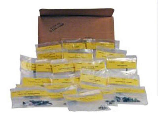 These body hardware master kits include all hardware to attach the sheetmetal on a Mustang body. All fasteners are of the correct grade & finish specified by Ford - with original manufacturer markings & design details.