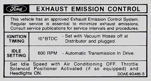 Ford Mustang Decal - Emissions - 351W With Automatic Transmi,ssion