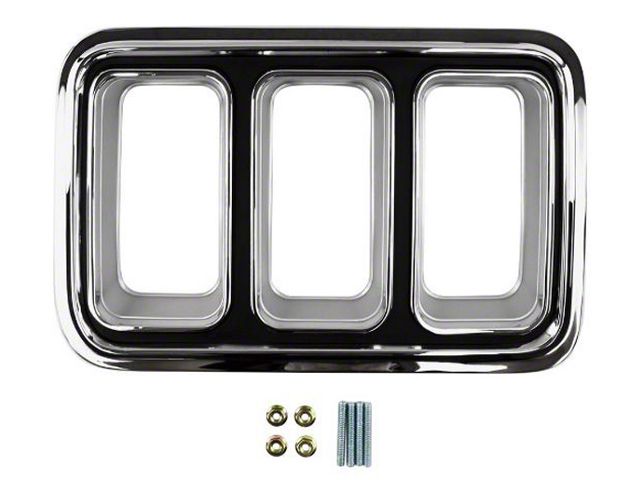 Replace your worn, original 1970 Mustang tail light bezel with a reproduction from Mac’s. This bezel is manufactured to OE specs on new, improved tooling for an exceptional fit. Chrome finish with correct color accents. Hardware included.