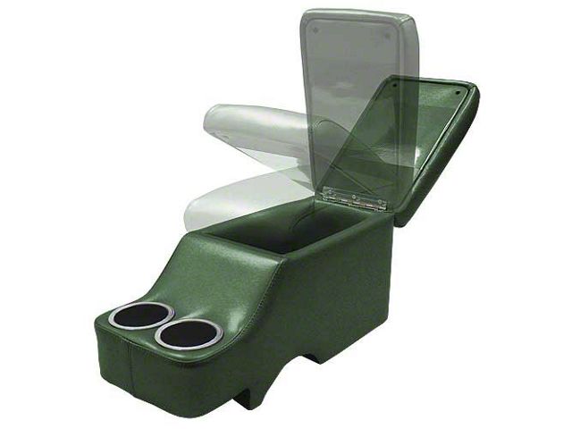 Featuring 2 cup holders (1 standard, 1 king size) with chrome accents & a storage compartment with a soft padded flip open lid, the Humphugger console is designed to fit between the bucket seats on the carpeted transmission hump.