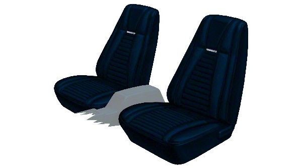 Distinctive Industries 1971-73 Mach 1 Upholstery features the original Corinthian grain skirts with Comfortweave inserts along with the Levant grain color coded stripes in 32 oz. vinyl. The dielectric patterns and pleats are just like the originals with the correct spacing and design. the welting is solid for black and vinyl wrapped for all other colors to ensure an exact color match.