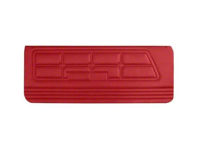 Distinctive Industries 1971-1973 Mustang Standard Front Door Panels feature the original Corinthian grain in 32 oz. vinyl. The dielectric patterns and pleats are correct. The correct hole placement is pre-cut into the panel backed by die cut fiber board, just like the originals.