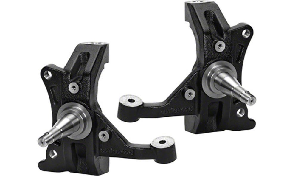 Wilwood’s C10 Iron ProSpindle Kits contain a pair of one piece spindles and integrated steering arms for 63-87 Chevrolet & GMC 2WD C10/C15 Pickups, Blazers and Suburban’s, dependent on part number. Specifically designed for use with Wilwood’s disc brake kits and with a 2.50” drop for a more aggressive stance without affecting steering geometry. Constructed from a proprietary grade of cast steel with a traditional bearing snout that supports Wilwood kit specific hubs in both 5 x 4.75 and 5 x 5.00 or 6 x 5.50 wheel bolt circles.