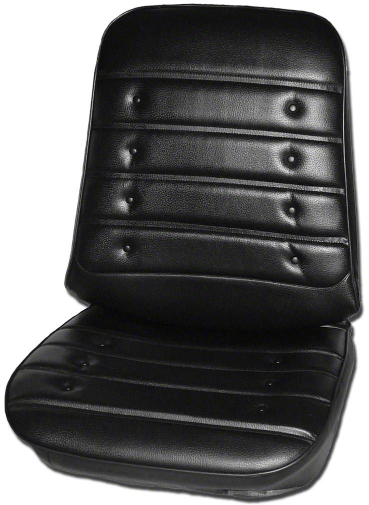 Restore your classic's interior using quality reproduction replacement seat covers from Legendary Auto Interiors. Each set features Derma grain inserts and Madrid grain skirts with buttons. Includes seat upholstery only, seat foam sold seperately.