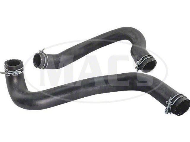 Each set consists of upper and lower radiator hose with logo and correct numbers. Also has double-wire type clamps stapled to each end - as original.