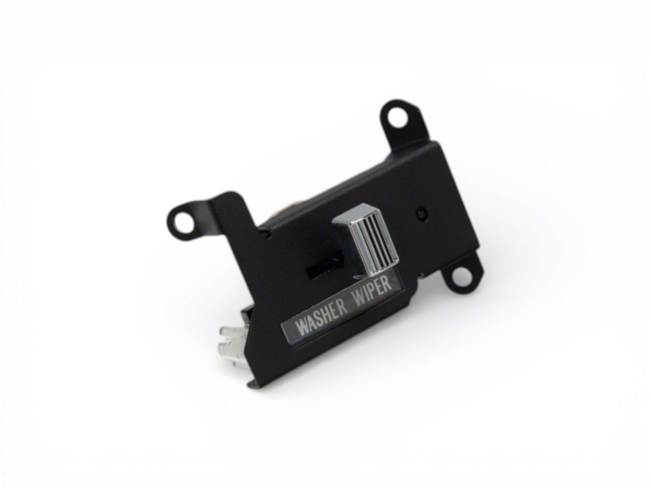 OER?? reproduction of the original GM windshield wiper switch designed for 1972-74 Camaro models without recessed wipers. Wiper switch body is manufactured in stamped steel featuring correct configuration for installation. Features original style ribbed chome knob along with correct font style and lettering for WASHER-WIPER wording. Each switch fits and installs as original.