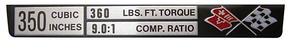 1972 (C3) Trim Parts, Console Specifications Plate, 350ci / 9.0:1 Ratio| 5912 Corvette