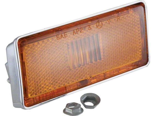 Construction and Durability. Manufactured from top-notch die-cast metal material, this side marker light features a corrosion- and rust-resistant composition, ensuring long-lasting durability. The amber lens color combined with the chrome housing gives it a classic look that matches the vehicle's original design. It’s fabricated with pre-cut and precise measurements, ensuring a perfect fit and weather-tight structure that protects against the elements.