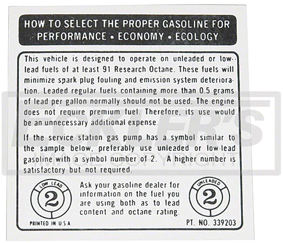 This El Camino reproduction fuel recommendation sleeve has been manufactured to original factory specifications using today's modern manufacturing techniques. You will find the fit, finish and function will work superbly for your restoration. In addition, using a reproduction fuel recommendation sleeve from the El Camino Store will add authenticity and value to your vehicle.
