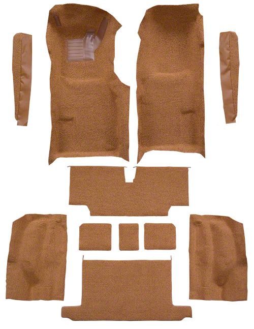 Construction and Appearance. Manufactured using durable Auto Trans Cutpile material, this carpet is high-quality and designed to withstand the demands of daily driving. It features a molded design with mass backing for durability and comfort, covering the entire interior floor with a seamless finish.