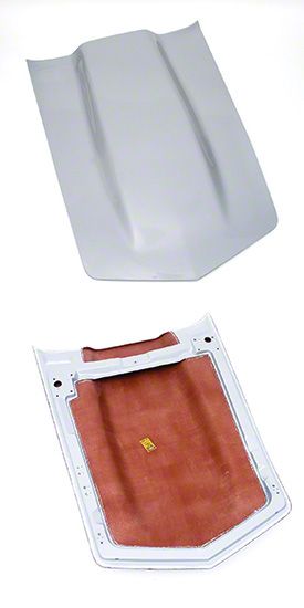Construction and Features. Crafted from hand-rolled fiberglass with riveted machined steel plates, this hood utilizes automotive-grade resins with three layers of 3.5-ounce mat and 21mm of soft sanding gel coating for added strength and finish quality. It uses the stock hinges and support, making it a direct replacement that maintains the original look and function of the vehicle.