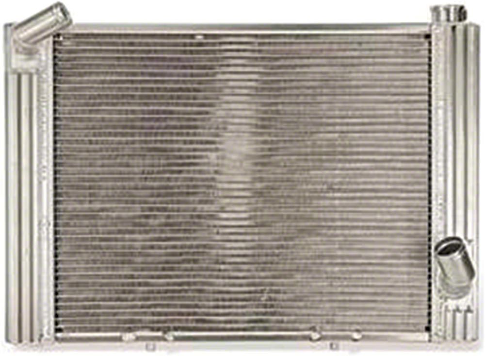 Flex-a-Fit Aluminum Radiators have internal fins that act as heat sinks to absorb heat more quickly from the engine coolant to then radiate it via external fins. This increases the tank's radiant surface area threefold. The unique external fin design integrates convenient fastening points into the tank itself, transforming the radiator into a bracket to attach electric fans, expansion tanks, oil coolers, etc. The side tank design simplifies an otherwise tough radiator swap using only a few drilled brackets.