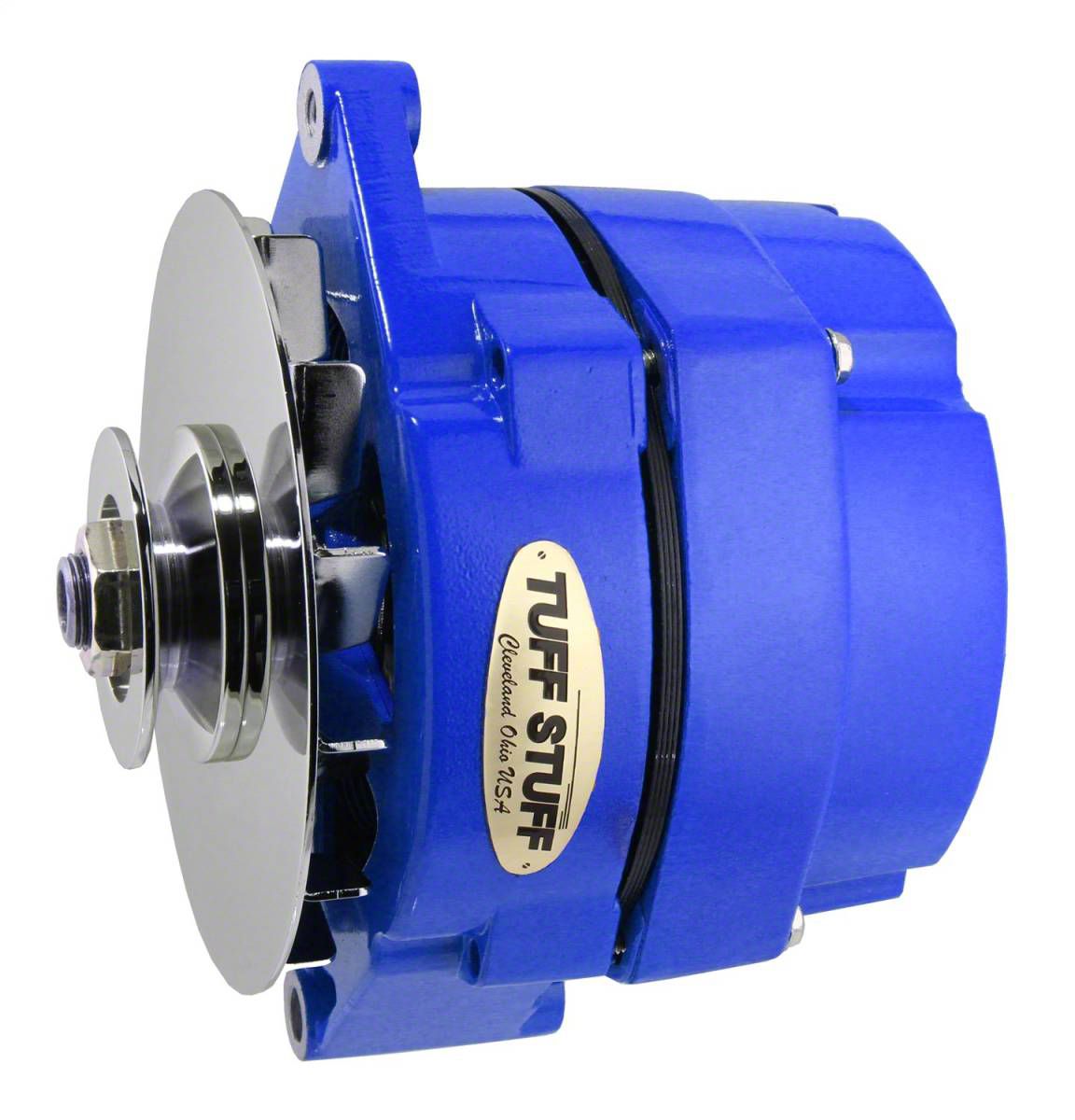 All Tuff Stuff alternators are hand built in Cleveland, Ohio and are tested to meet or exceed OEM specifications. All Tuff Stuff alternators are made from 100% new components and carry a one year limited warranty. Tuff Stuff has alternator applications for virtually all muscle cars, hot rods, customs and light trucks in just about every finish imaginable. Available in chrome plated, polished aluminum, powder