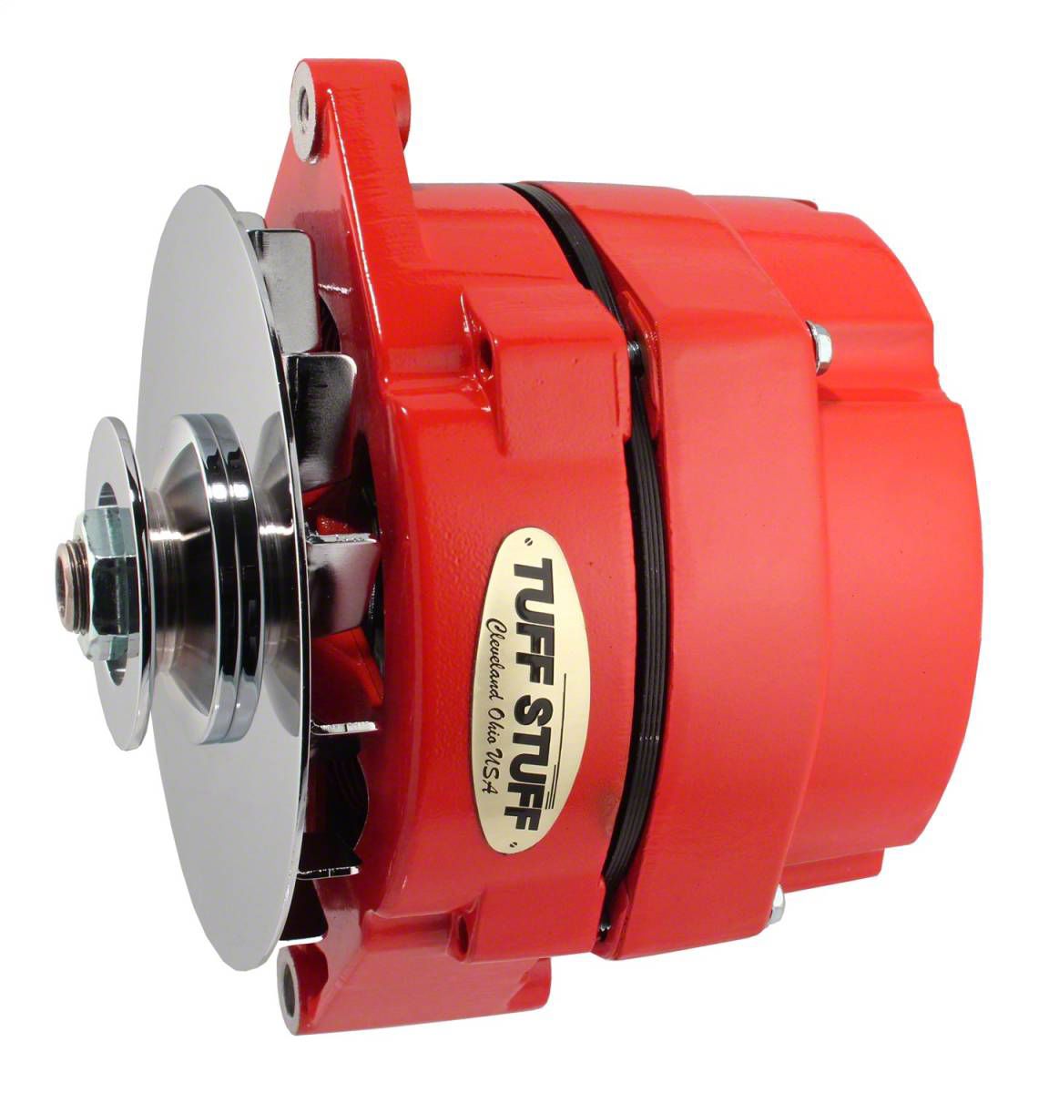 All Tuff Stuff alternators are hand built in Cleveland, Ohio and are tested to meet or exceed OEM specifications. All Tuff Stuff alternators are made from 100% new components and carry a one year limited warranty. Tuff Stuff has alternator applications for virtually all muscle cars, hot rods, customs and light trucks in just about every finish imaginable. Available in chrome plated, polished aluminum, powder