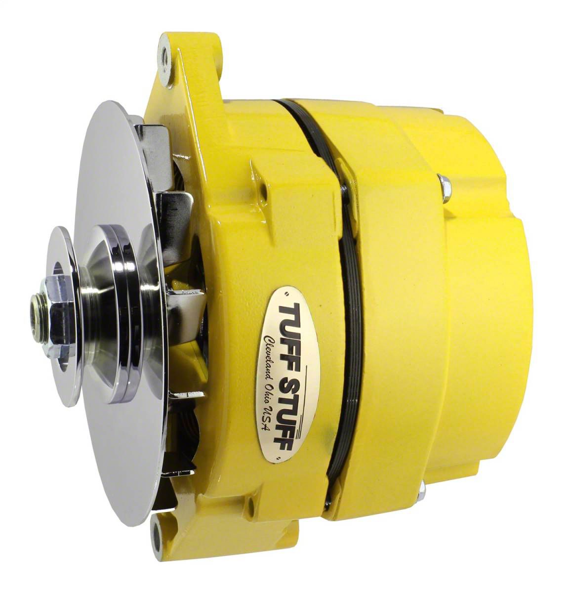 All Tuff Stuff alternators are hand built in Cleveland, Ohio and are tested to meet or exceed OEM specifications. All Tuff Stuff alternators are made from 100% new components and carry a one year limited warranty. Tuff Stuff has alternator applications for virtually all muscle cars, hot rods, customs and light trucks in just about every finish imaginable. Available in chrome plated, polished aluminum, powder