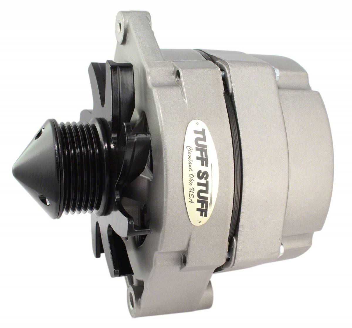 All Tuff Stuff alternators are hand built in Cleveland, Ohio and are tested to meet or exceed OEM specifications. All Tuff Stuff alternators are made from 100% new components and carry a one year limited warranty. Tuff Stuff has alternator applications for virtually all muscle cars, hot rods, customs and light trucks in just about every finish imaginable. Available in chrome plated, polished aluminum, powder