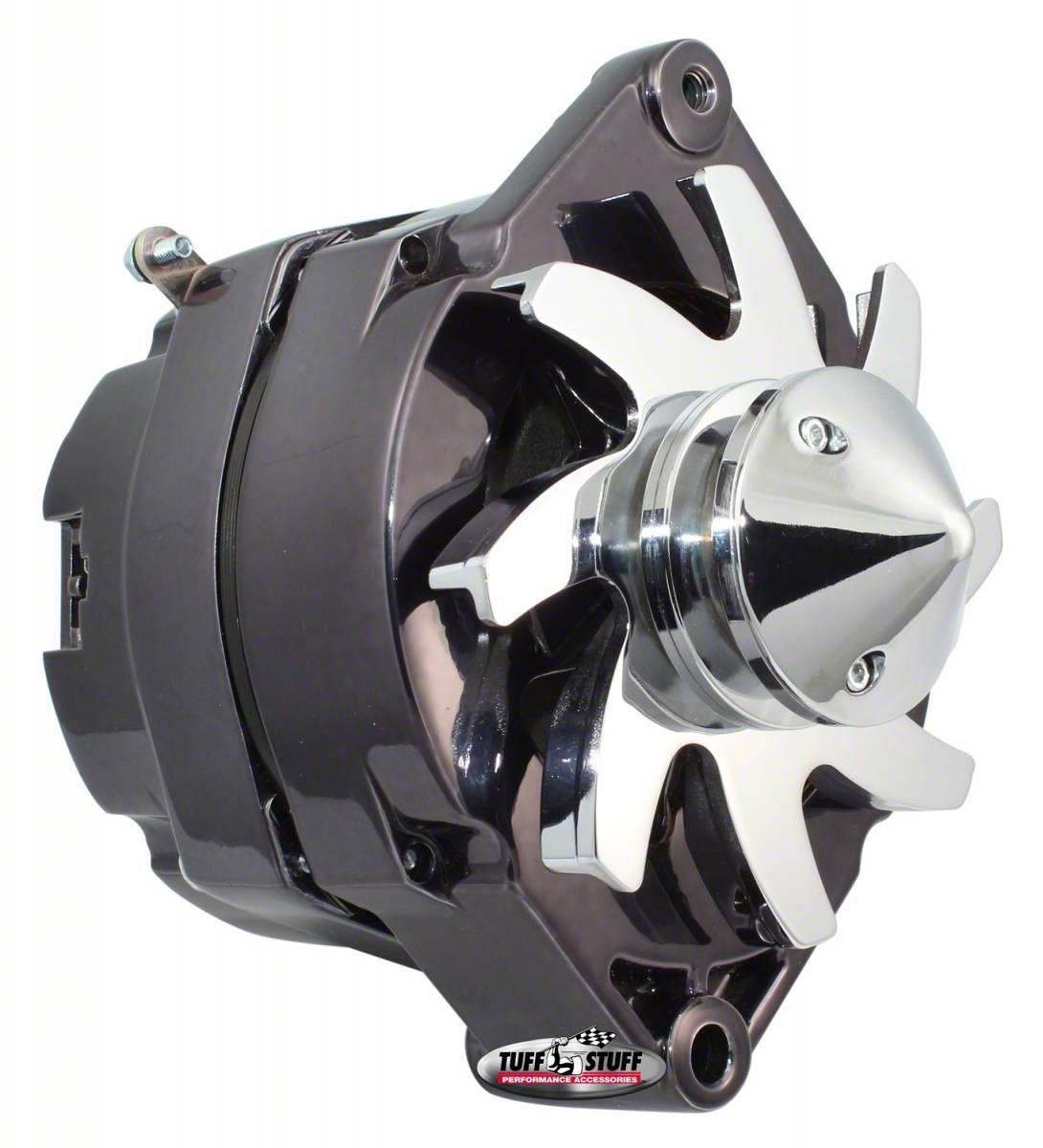 All Tuff Stuff alternators are hand built in Cleveland, Ohio and are tested to meet or exceed OEM specifications. All Tuff Stuff alternators are made from 100% new components and carry a one year limited warranty. Tuff Stuff has alternator applications for virtually all muscle cars, hot rods, customs and light trucks in just about every finish imaginable. Available in chrome plated, polished aluminum, powder coated and plain as cast finishes. All alternators are for 12 volt, negative ground systems, except where noted.