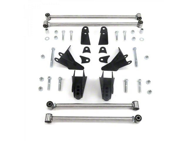 Helix's Heavy Duty Universal Triangulated 4-Link Kit is strong enough to handle your horsepower and torque. With the same .156 wall tubing that is the standard in drag racing applications, Helix's 4-link kit will remain straight and perfectly aligned under even the most demanding applications. The adjustable rear 4-link features extra-long 28 inch main bars and 18 inch secondary bars to provide you with the maximum in suspension travel and adjustability. Brass sleeved bushings guarantee a lifetime of squeak-free operation. Completely MIG welded for maximum strength. All mounts are cut from 3/16” plate. Special infinitely adjustable CNC machined threaded rod ends are thicker than usual and thread over 2.5 inches into the 4-link tubes for both strength and adjustability. Fully plate