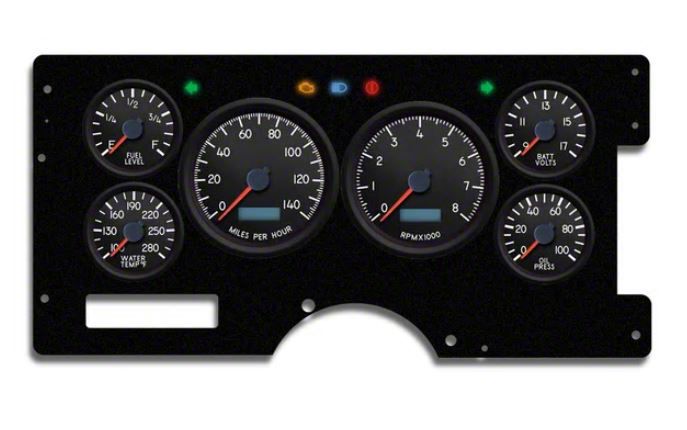 1973-1987 Chevrolet-GMC Truck New Vintage USA 6 Gauge Aviator Series Package - 140 MPH Programmable Speedometer with Tachometer, Oil Pressure, Water Temp, Fuel and Volt Meter - Black