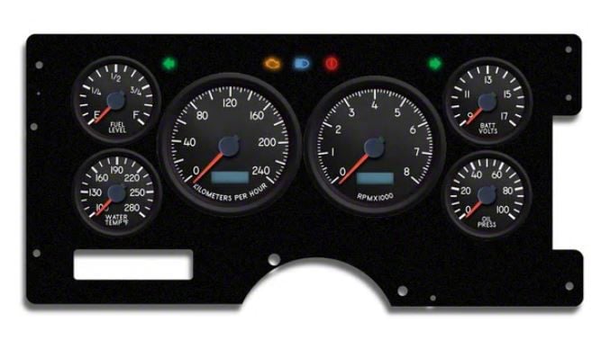 1973-1987 Chevrolet-GMC Truck New Vintage USA 6 Gauge Aviator Series Package - 240 KPH Programmable Speedometer with Tachometer, Oil Pressure, Water Temp, Fuel and Volt Meter - Black