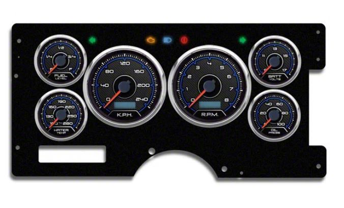 1973-1987 Chevrolet-GMC Truck New Vintage USA 6 Gauge CFR Series Package - 240 KPH Programmable Speedometer with Tachometer, Oil Pressure, Water Temp, Fuel and Volt Meter - Blue