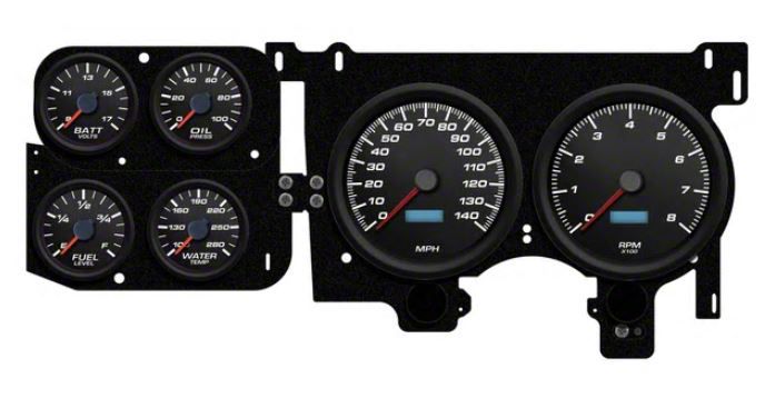 1973-1987 Chevrolet-GMC Truck New Vintage USA 6 Gauge Performance II Series Package - 240 KPH Programmable Speedometer with Tachometer, Oil Pressure, Water Temp, Fuel and Volt Meter - Black