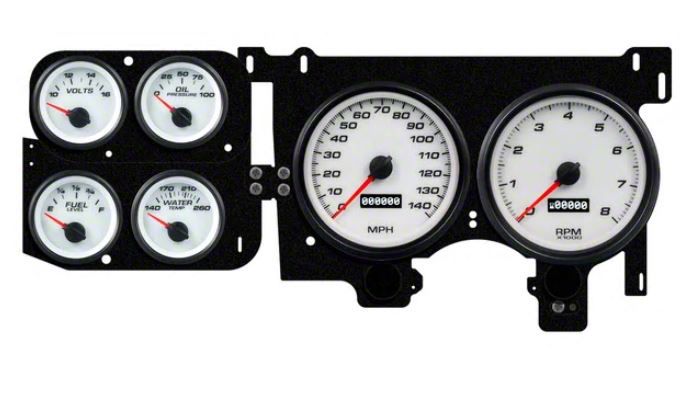 1973-1987 Chevrolet-GMC Truck New Vintage USA 6 Gauge Performance Series Package - 140 MPH Programmable Speedometer with Tachometer, Oil Pressure, Water Temp, Fuel and Volt Meter - White